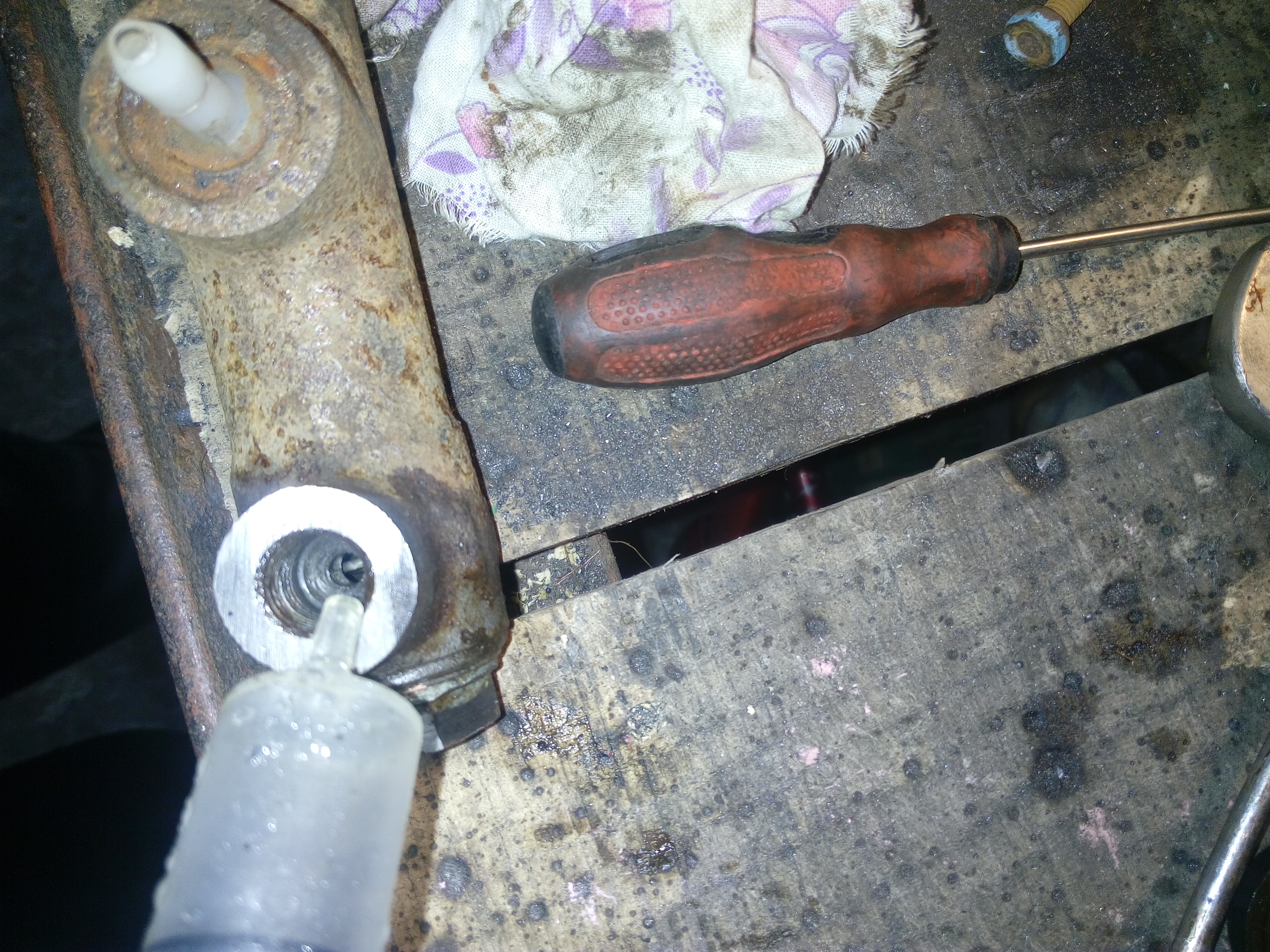 - Шприцом наливаем тормозную жидкость в сам корпус ГТЦ для смазки и более прокачки.