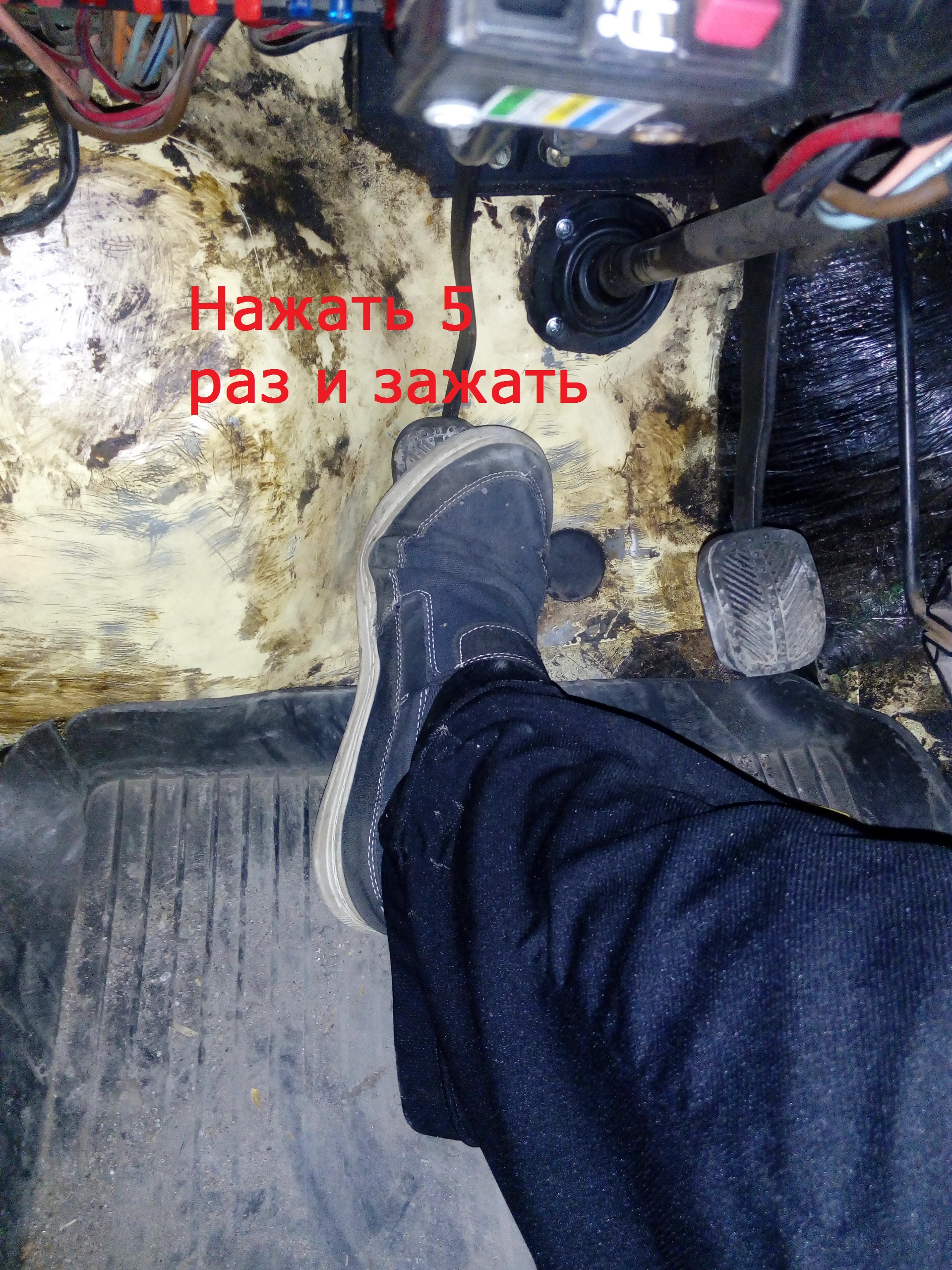 - Просим помощника 5 раз нажать на педаль сцепления и зажать ее.