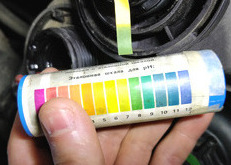 Если вам доступна лакмусовая бумажка, то с ее помощью также можно косвенно проверить состояние антифриза. Для этого нужно поместить тестовую полоску в жидкость и дождаться результат реакции. Оценив цвет бумажки узнаете рН-фактор. В оптимальном варианте бумажка не должна быть ни синего, ни красного цвета. Нормальным значением рН для антифриза принято считать 7…9.