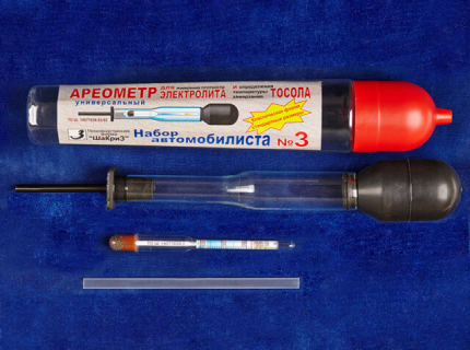 Самые лучшие ареометры с стеклянной колбой. Раньше были в продаже харьковские, сейчас есть китайские. С пластиковой колбой лучше не брать. Цена до 200 руб. Если проверять нужно только АКБ, то берите ареометр.