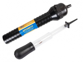 | 4 | Вымпел АР-02 5002 | Шкала до максимального деления 1,30, широкая, деления хорошо видно. Продается без чехла и груша немного воняет, однако цена самая низкая | Стеклянная колба, точно определяет плотность, груша герметично закреплена — не подсасывает воздух, тонкий носик | В комплекте нет футляра, резиновая часть изделия недолговечна, стекло слишком тонкое и есть риск разбить при неаккуратной эксплуатации | 160 |