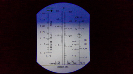 Шкалы плотности антифриза, которые видно в монокуляр рефрактометра