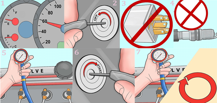 Чтобы конкретно определить причину неисправности и проводится замер компрессии двигателя на горячую и на холодную. Разберемся, как проводить такую процедуру как при помощи компрессометра так и без него.