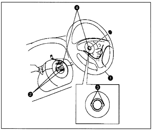 - Во время демонтажа рулевого колеса следует не допускать чрезмерного проворачивания контактного кольца в одну из сторон. Несоблюдение этого правила приведет к обрыву кабеля и серьезным проблемам с проводкой.