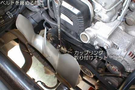 Кожух поднимается, после снимаются V-образные ремни. Чтобы сделать это, нужно ослабить болты вязкостной муфты вентилятора.