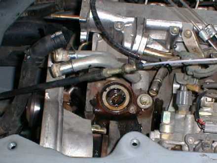 после снимается водяная помпа, не забывайте, что если Вы не снимете термостат, то и водяную помпу снять вряд ли получится.