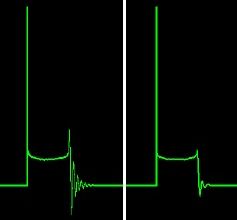 В связи с описанными особенностями проверка зажигания осциллографом и съем осциллограммы напряжения высоковольтных импульсов зажигания при помощи емкостных DIS-датчиков происходит дифференциально. То есть, получается фактический съем осциллограммы выходного напряжения катушки. Если катушки исправны, то в конце горения должны наблюдаться затухающие колебания.