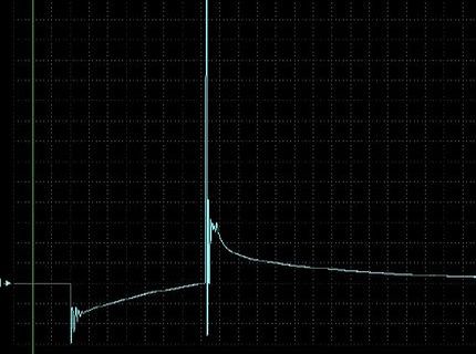 Осциллограмма импульса высокого напряжения исправной стержневой индивидуальной КЗ, полученная с помощью индуктивного датчика.