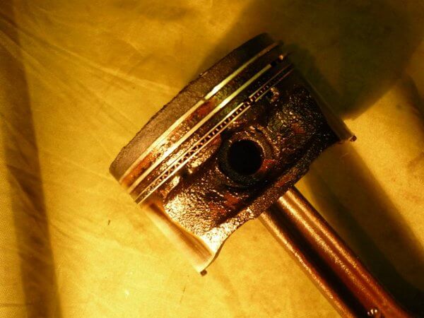 Откручиваем и снимаем ГБЦ, откручиваем шатуны, достаем поршни, снимаем кольца, поршни нужно замочить в керосине.