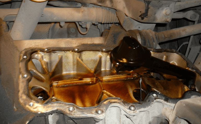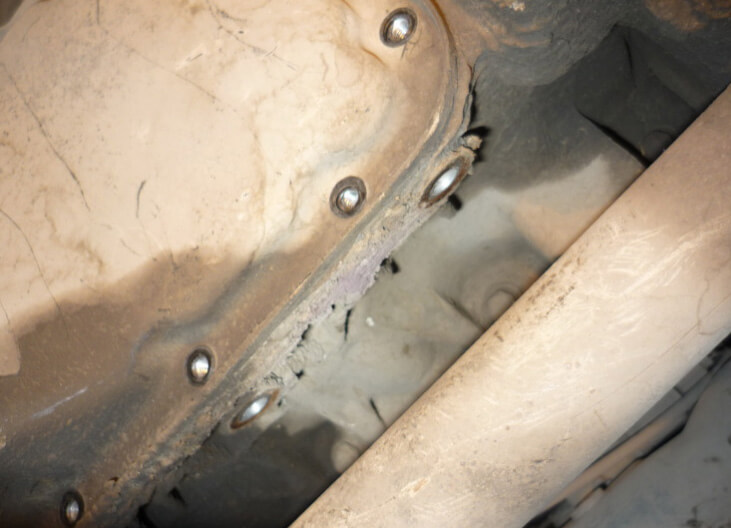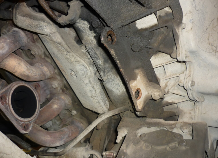 Надо залезть под машину, можно работать из ямы или заехать на эстакаду.