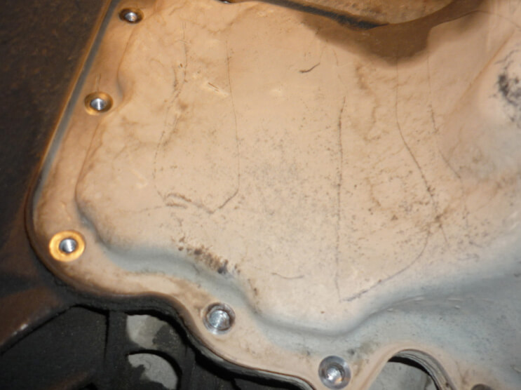 Откручиваем и срезаем поддон, будьте аккуратны и помните, что рядом со шкивом коленвала нельзя загонять нож вовнутрь, так как там находится маслоприемник.