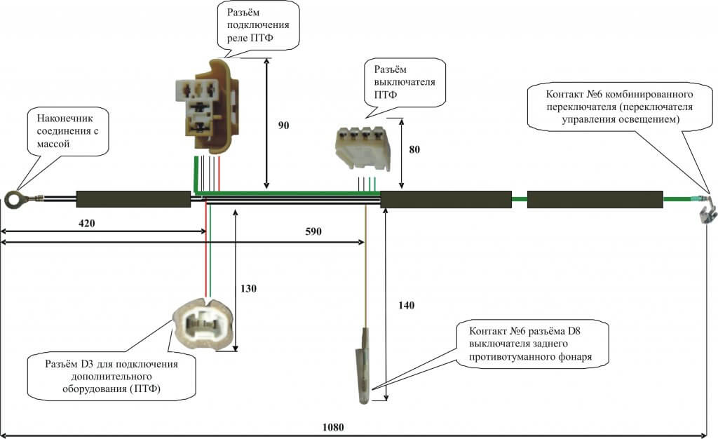 Размеры проводки противотуманных фар: