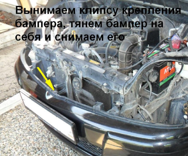 10.Клипсу крепления бампера нужно вытащить, бампер тянем на себя, он должен сняться без проблем.