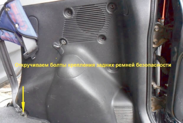 12.Еще понадобится открутить болты крепления задних ремней безопасности.