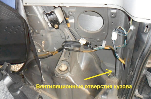 27.Для того, чтобы облегчить протяжку провода я снял резиновые заглушки технологических отверстий кузова.