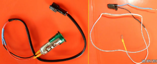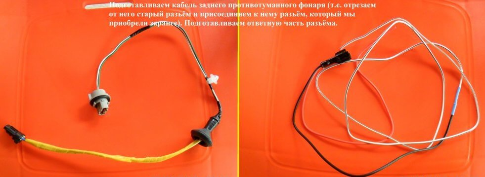 29.Подготавливаем кабель заднего ПТФ, для этого нужно отрезать от него старый разъём и присоединить новый, ранее приобретенный.