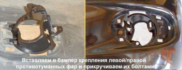 15.В бампер нужно вставить крепления правой/левой противотуманных фар, крепления прикручиваются болтами с резьбой М6.