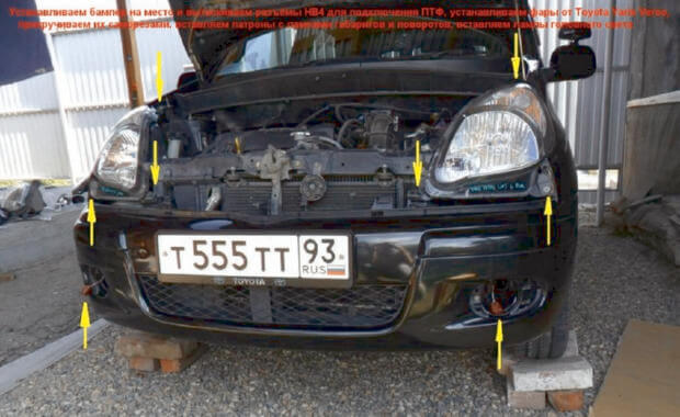 В данной статье содержится подробное описание установки противотуманных фар, фар гол. света от Toyota Yaris Verso, а так же задней противотуманной фары и розетки.