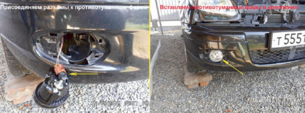 17.Присоединяем разъёмы к ПТФ. Противотуманные фары вставляются в крепления до щелчка.