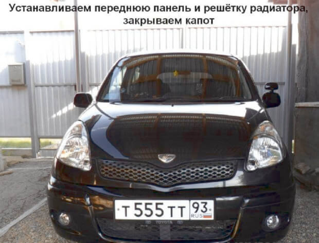 19.Начинаем установку передней панели и решетки радиатора, все ставится в обратном порядке, после капот можно закрыть.