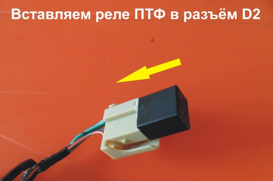20.Реле ПТФ вставляется в разъём D2 жгута проводов освещения.