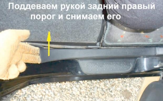 8.Подцепляем рукой порог и снимаем его.
