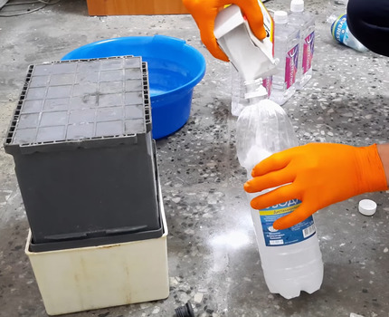 Чтобы исключить самопроизвольную утечку тока, убрать токопроводящие мосты на корпусе, нужен такой же раствор (можно уже меньшей концентрации, 10-15%). Протрите им хорошо весь аккумулятор сверху и по бокам смоченной тряпкой.
