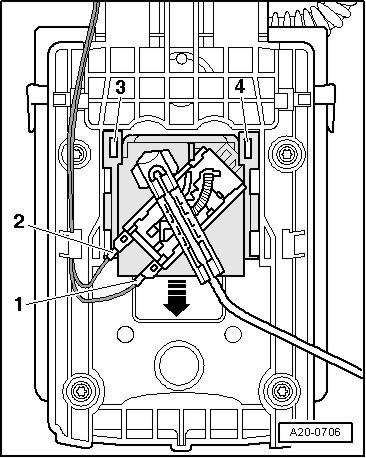 - Разблокировать разъёмы -1...3- и отсоединить их. Затем отогнуть назад защёлки разъёмов;