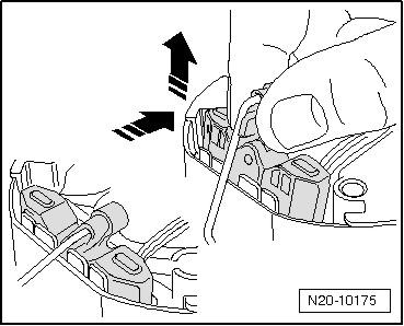 - Если датчик не удаётся отсоединить, то следует слегка отжать в сторону фиксаторы -стрелки-;