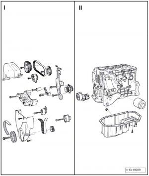 Для проведения монтажных работ закрепить двигатель на стенде для двигателей и агрегатов трансмиссии -VAS 6095-.