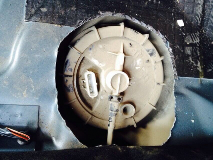 Этот способ удобен и позволяет в дальнейшем менять вышедший из строя бензонасос, не загоняя машину на яму и не снимая бак.
