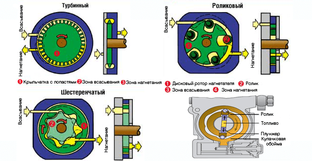 Типы топливных насосов: карбюратор, инжектор, дизель (ТНВД).